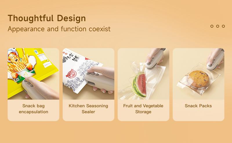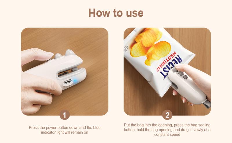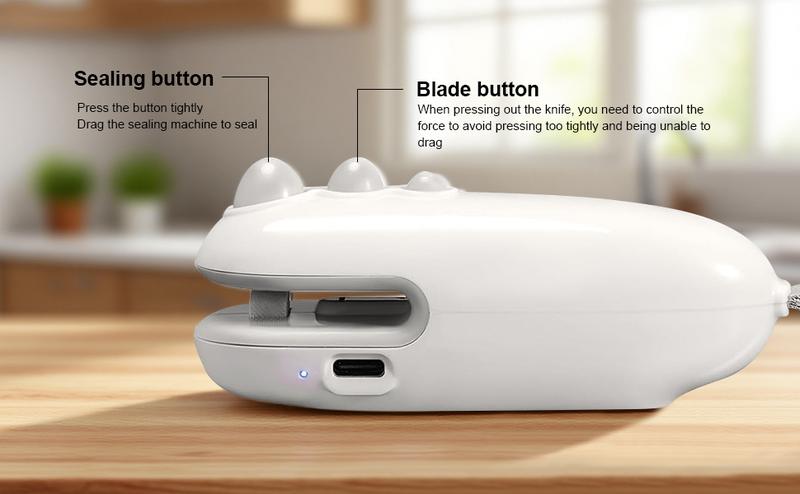 2-in-1 Mini Bag Sealer and Knife: This USB-C rechargeable mini bag sealer can serve as both a heat sealer and a hidden knife, allowing you to easily seal or open bags! It is a very good kitchen helper.